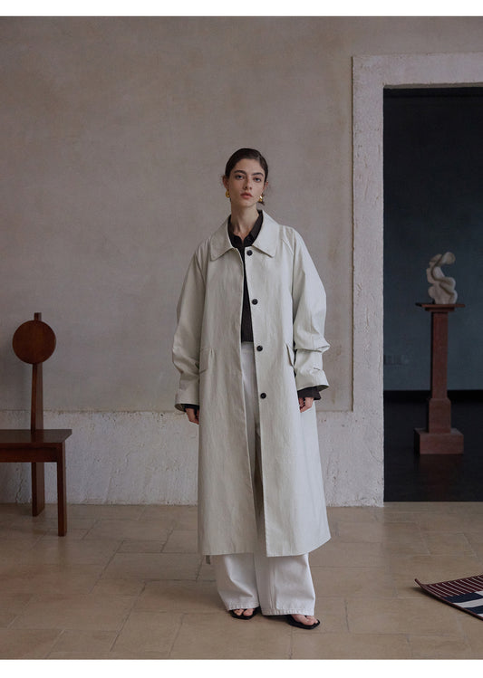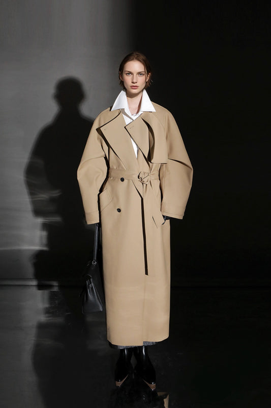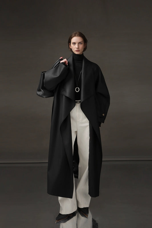 Geniş Yaka Uzun Kollu Trençkot – Baharlık Uzun Ceket