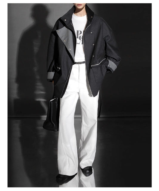 Kore Tarzı Rahat ve Bol Kesim Lapel Rüzgarlık Ceket