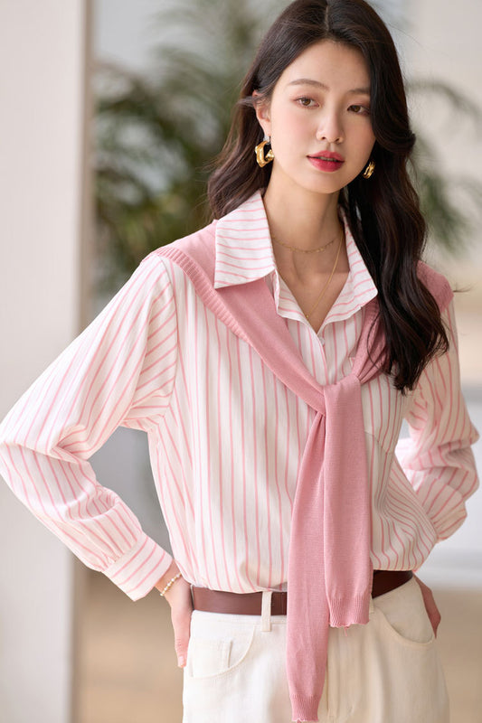 20% İndirimŞal Detaylı Çizgili Gömlek (İki Parça)