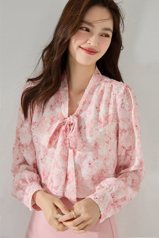 26% İndirimFiyonklu Pembe Çiçekli Gömlek