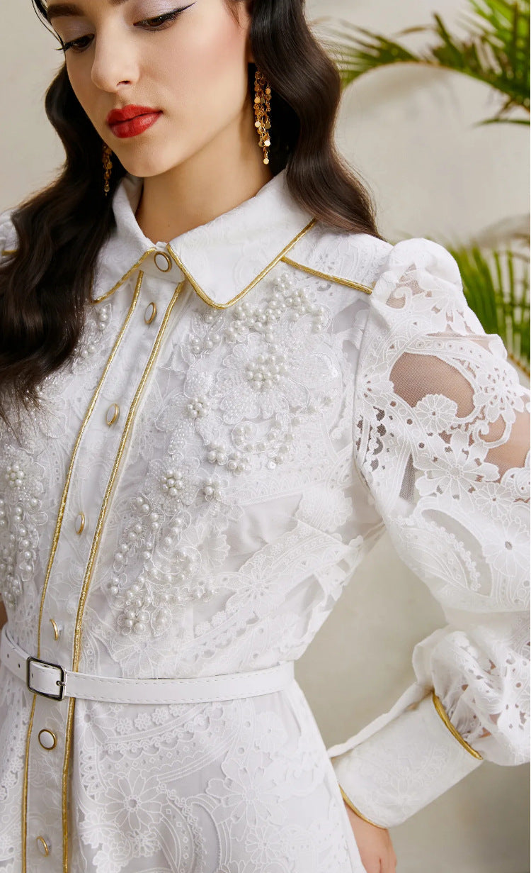 Fransız Zarafeti Beyaz Dantel Gömlek