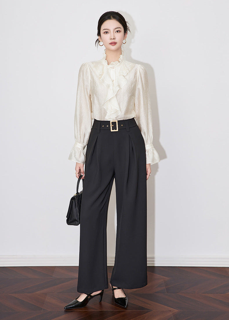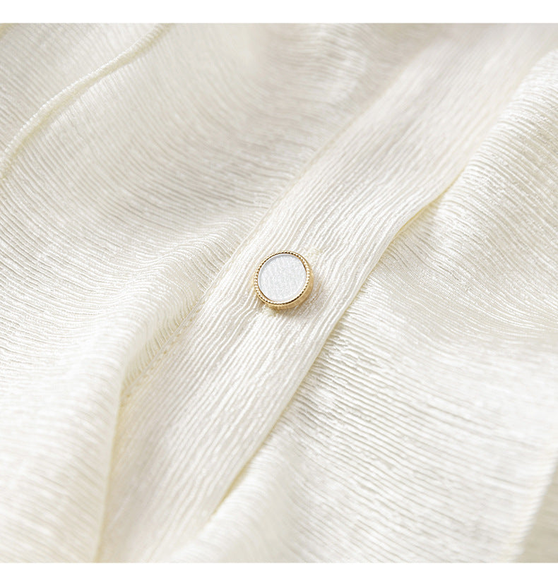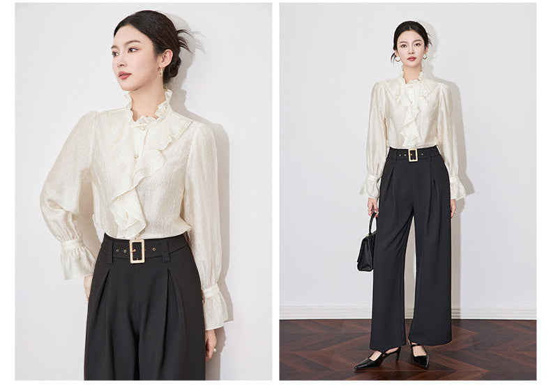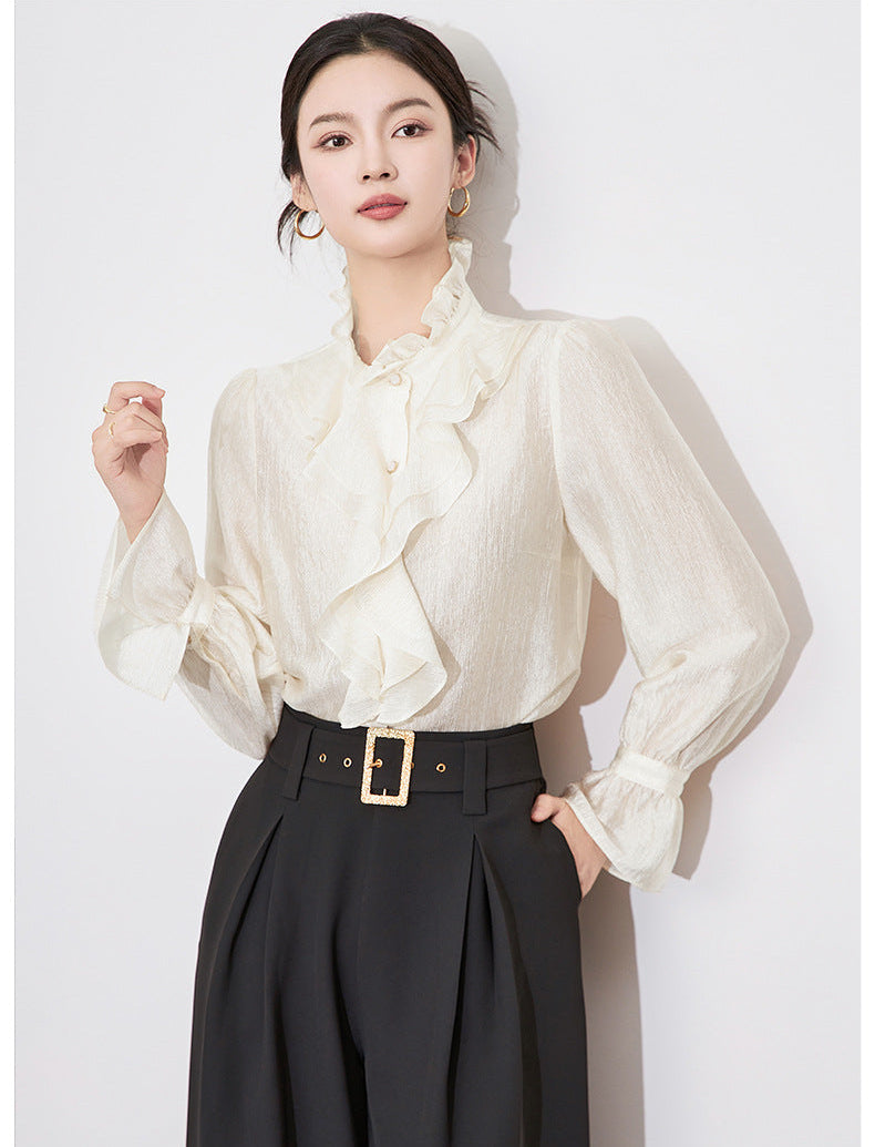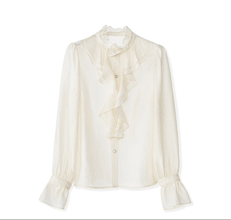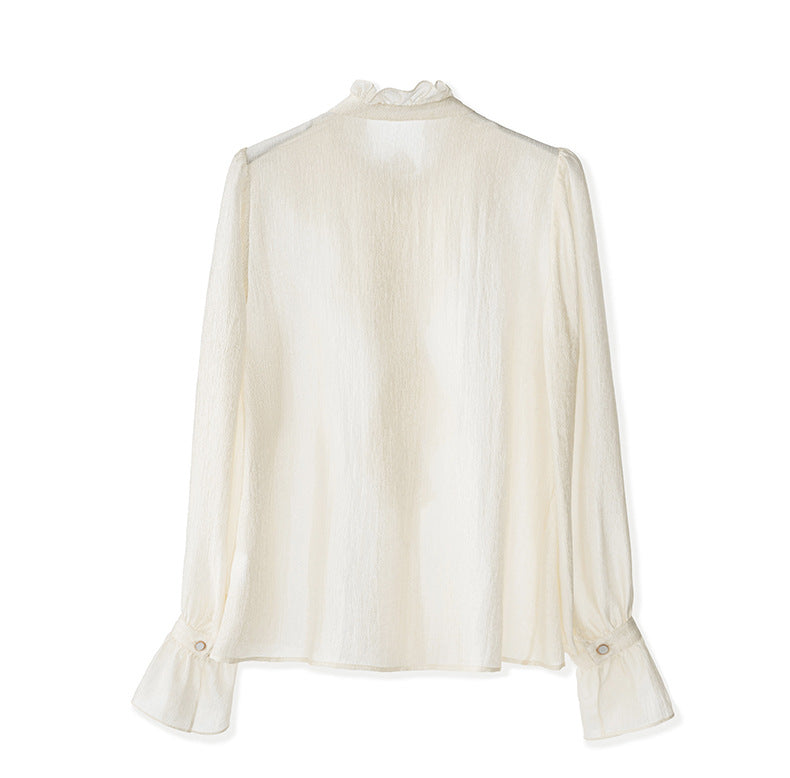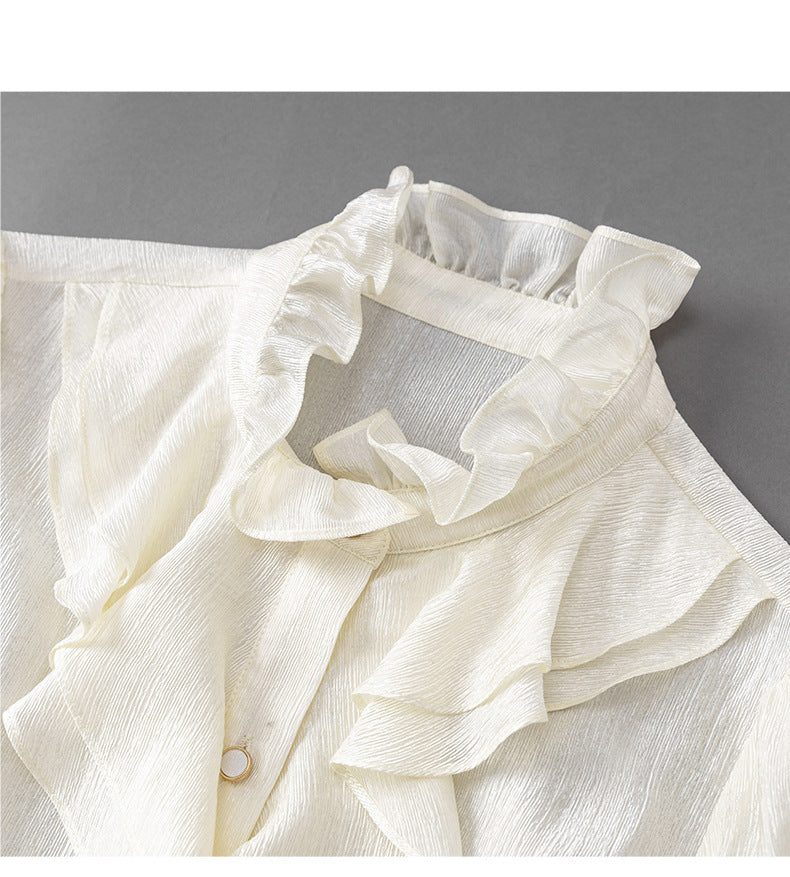 Fırfır Yaka Düğmeli Krem Gömlek