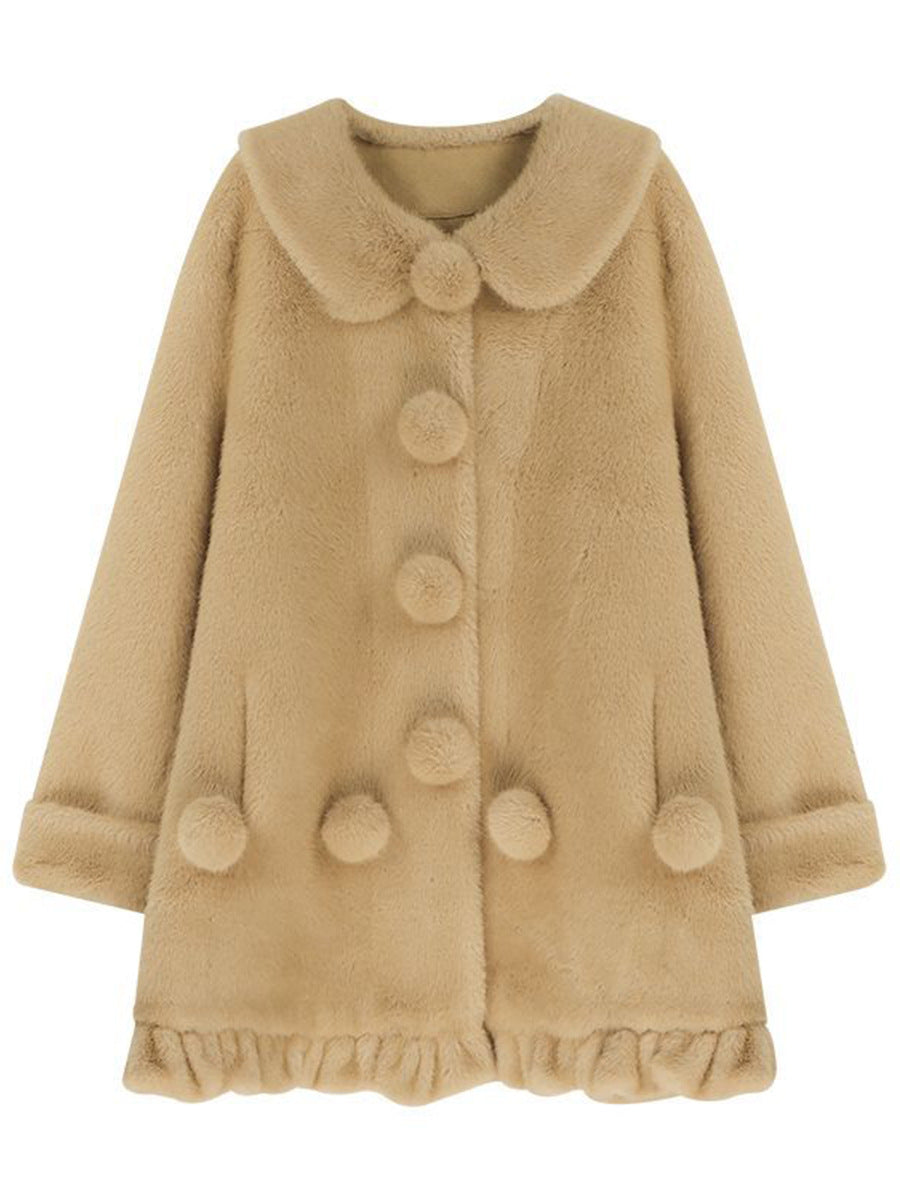 Fransız Stil Bebek Yaka Pelüş Kaban