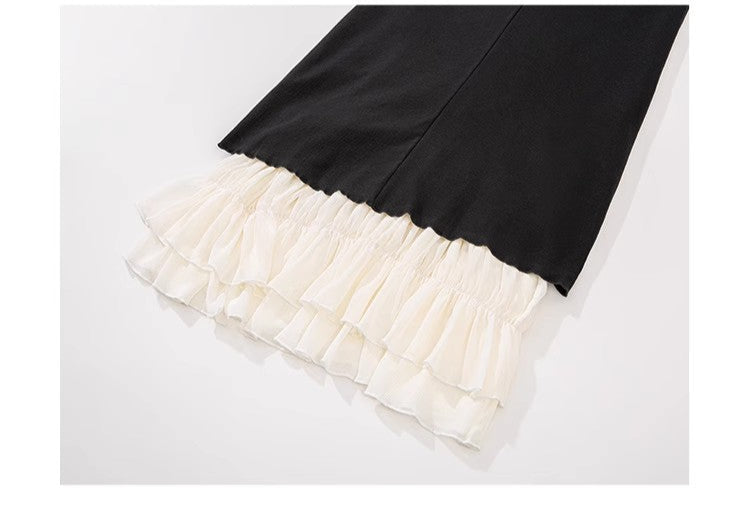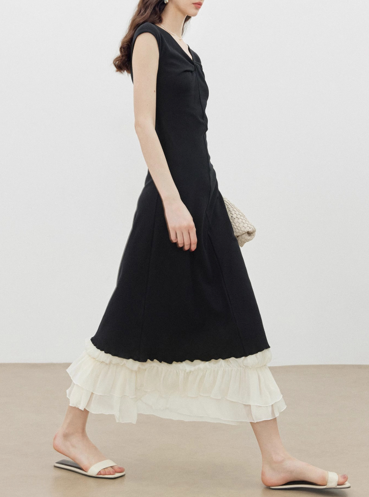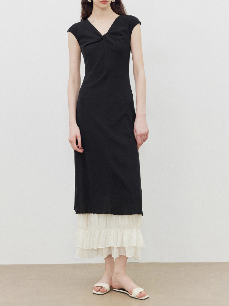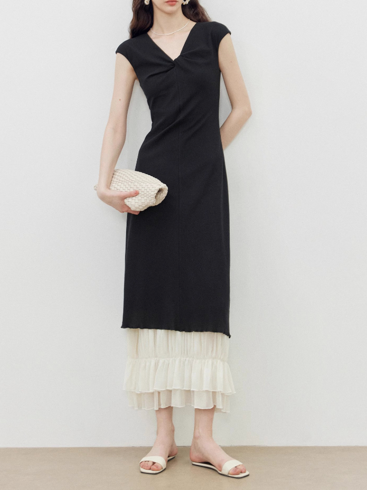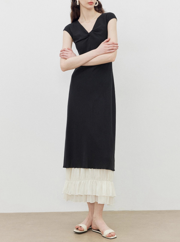 Katmanlı Tasarım Siyah Yazlık Elbise