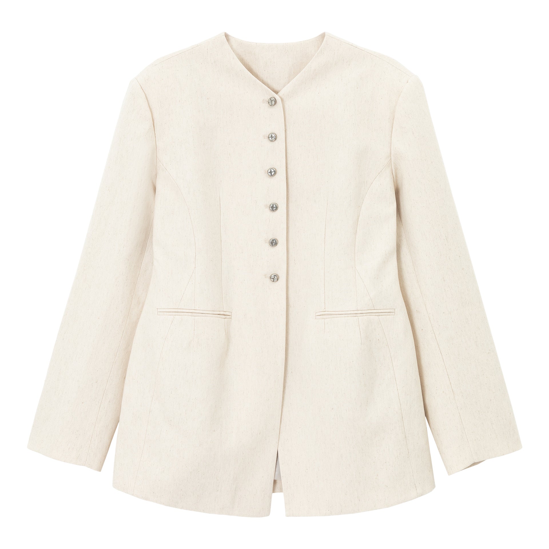 Minimalist Yakasız Bel Detaylı Blazer Ceket