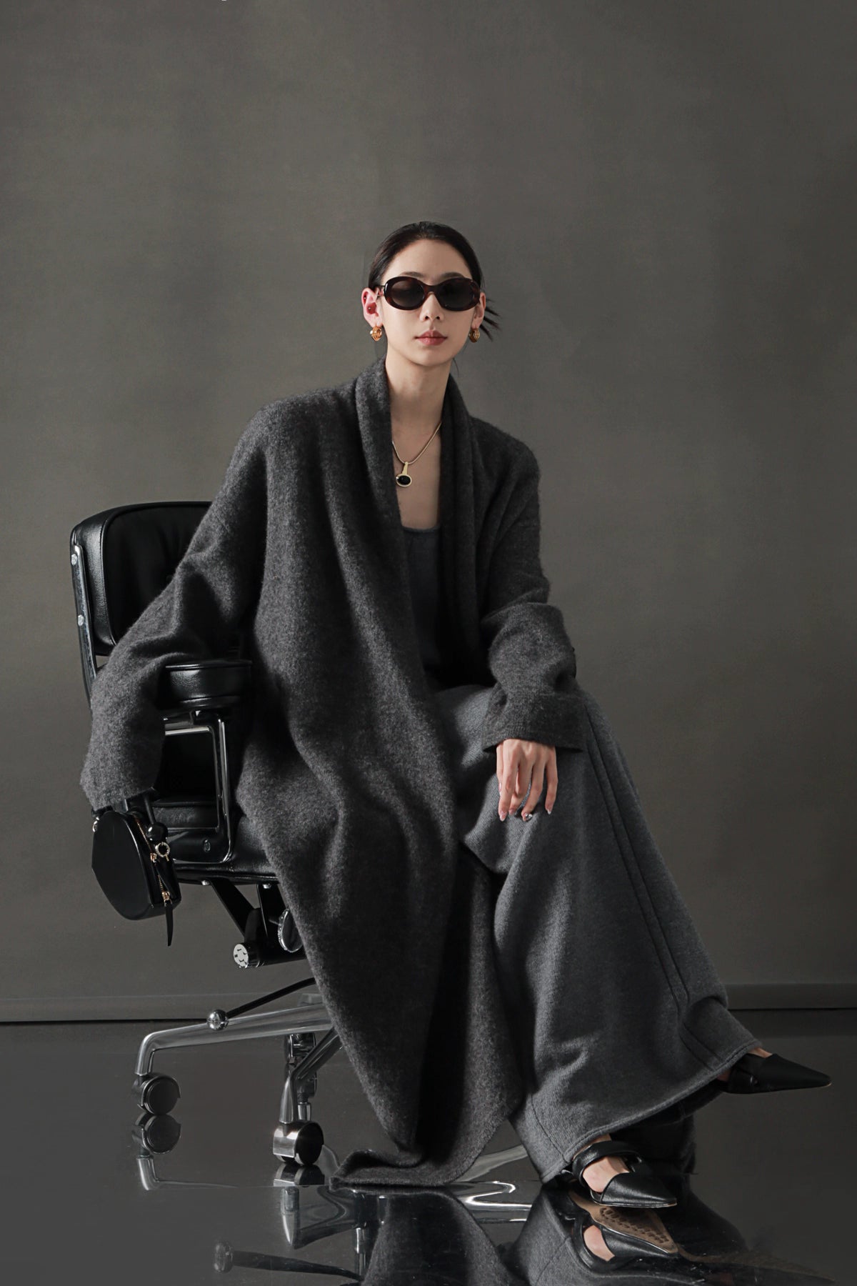 Minimalist Yün Karışımlı Kaşmir Uzun Hırka