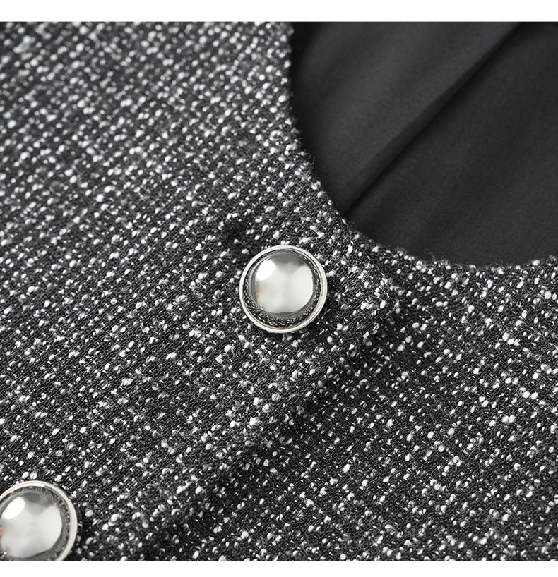 Eski parıltıyı modern zarafetle buluşturan bu iki parça takım, stil sahibi kadınların gardırobuna şıklık katıyor. Kolsuz ceket lüks dokusuyla sofistike bir duruş sunarken, fishtail etek vücuda oturan formu ve hareketli kesimiyle feminen bir siluet oluşturuyor. Siyah ve gri tonlarıyla öne çıkan takım, hem resmi davetlerde hem de özel günlerde zarif bir seçenek.