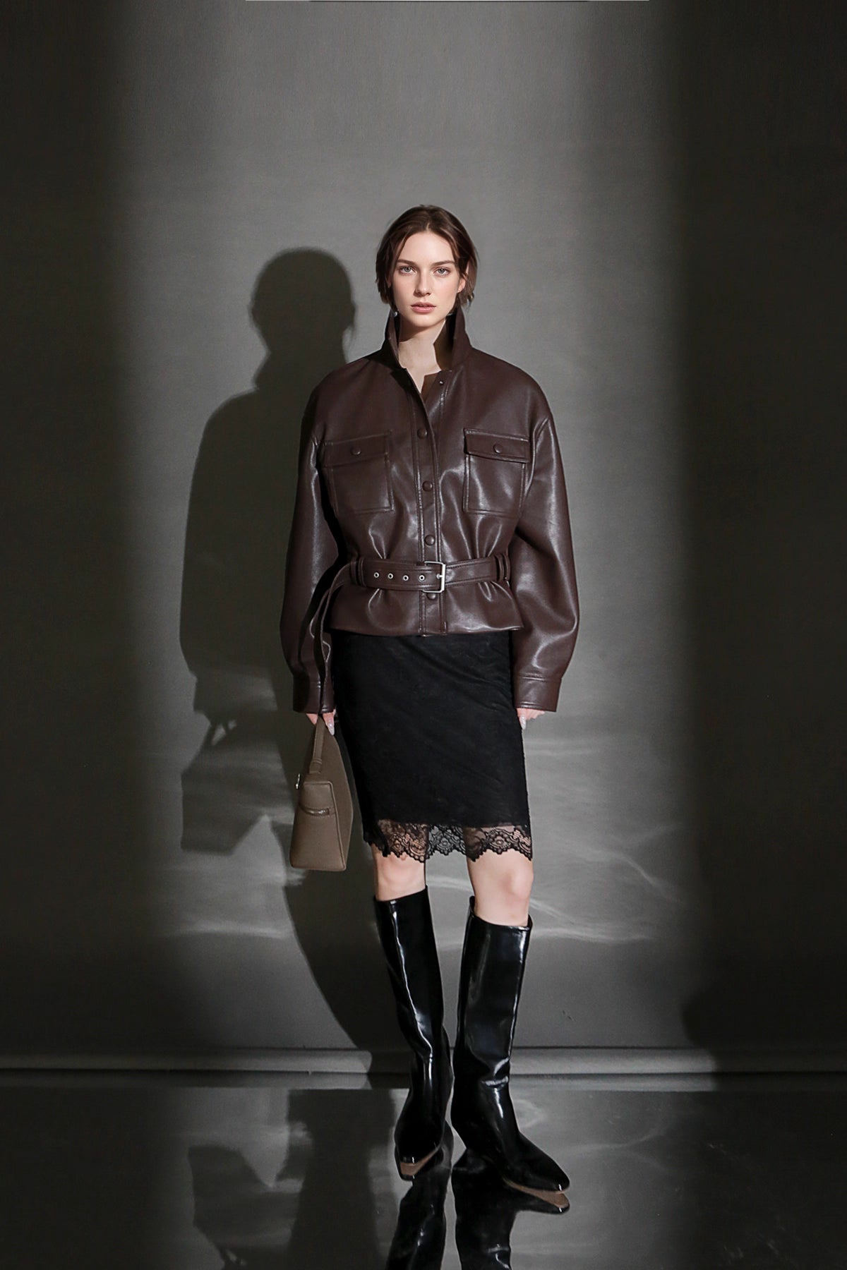 Polo Yaka Kuzu Derisi Ceket – Bel Oturtmalı Şık Tasarım
