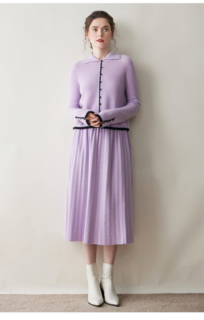 Şıklığı ve rahatlığı bir araya getiren bu Chanel stili renk bloklu kaşmir hırka, sonbahar ve kış sezonunun favori parçası olmaya aday. %30–50 oranında kaşmir karışımıyla üretilen hırka, yumuşacık dokusuyla sıcacık bir konfor sunarken aynı zamanda zarif bir görünüm sağlar.