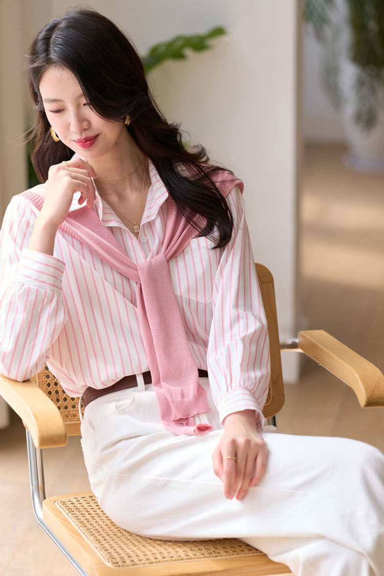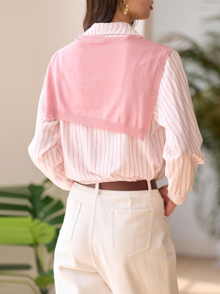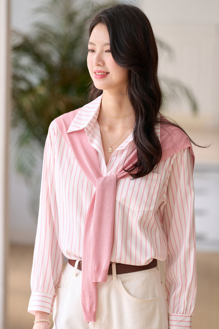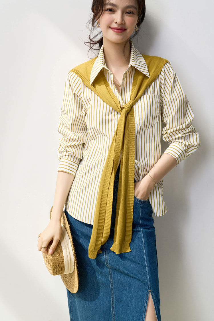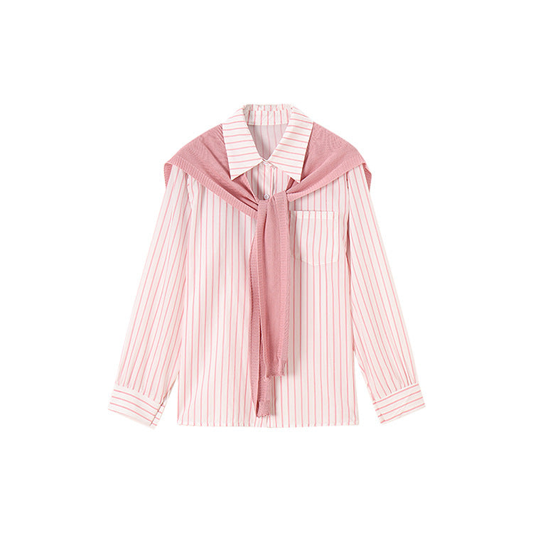 Şal Detaylı Çizgili Gömlek (İki Parça)
