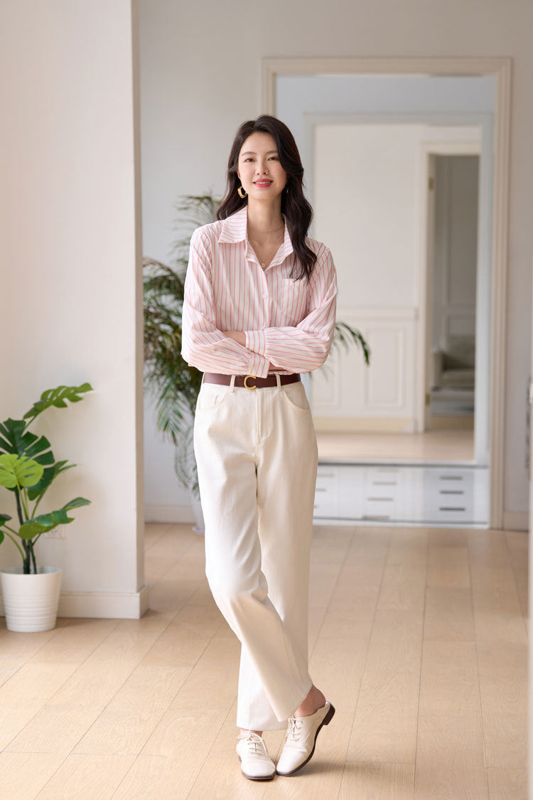 Klasik gömlek kesimi, çıkarılabilir şal detayıyla modern bir yorum kazanırken, yüksek sıcaklıkta şekillendirme tekniği sayesinde formunu uzun süre korur.