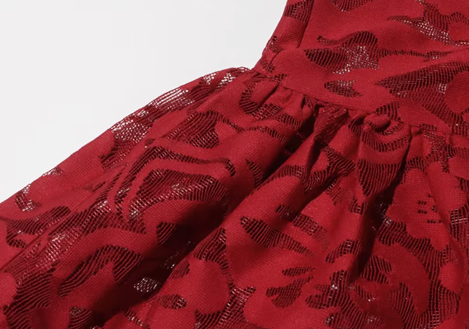 Prenses Tarzı Fırfırlı Stand Yaka Dantel Elbise