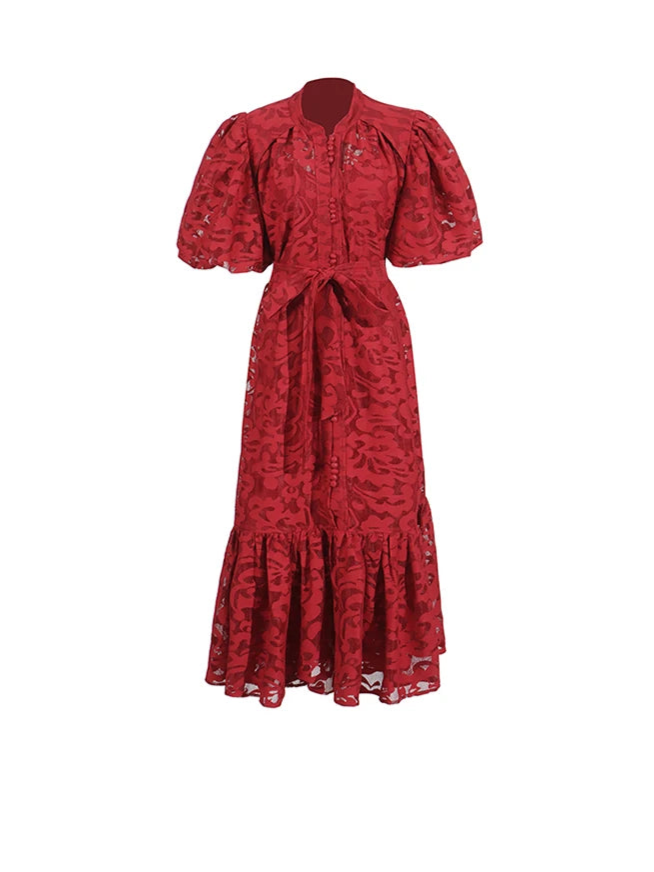 Penelope Dantel Detaylı Fırfırlı Maxi Elbise