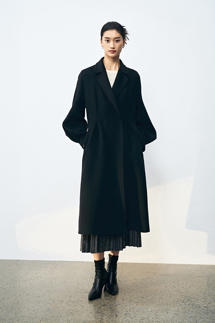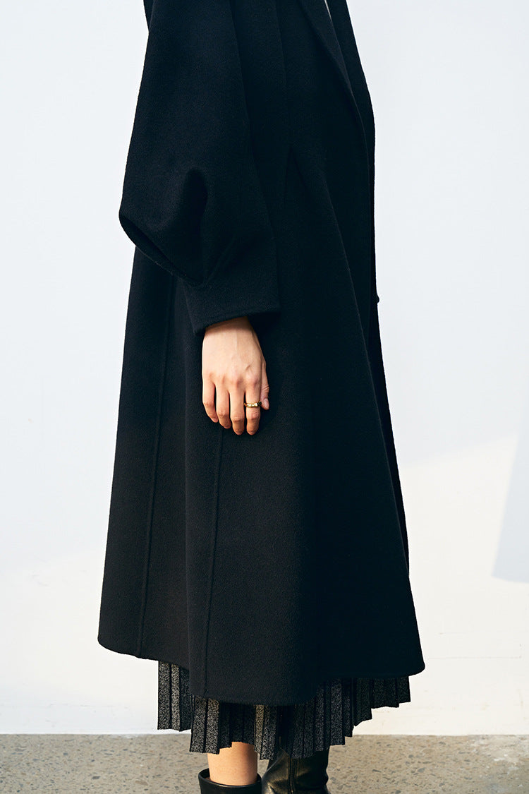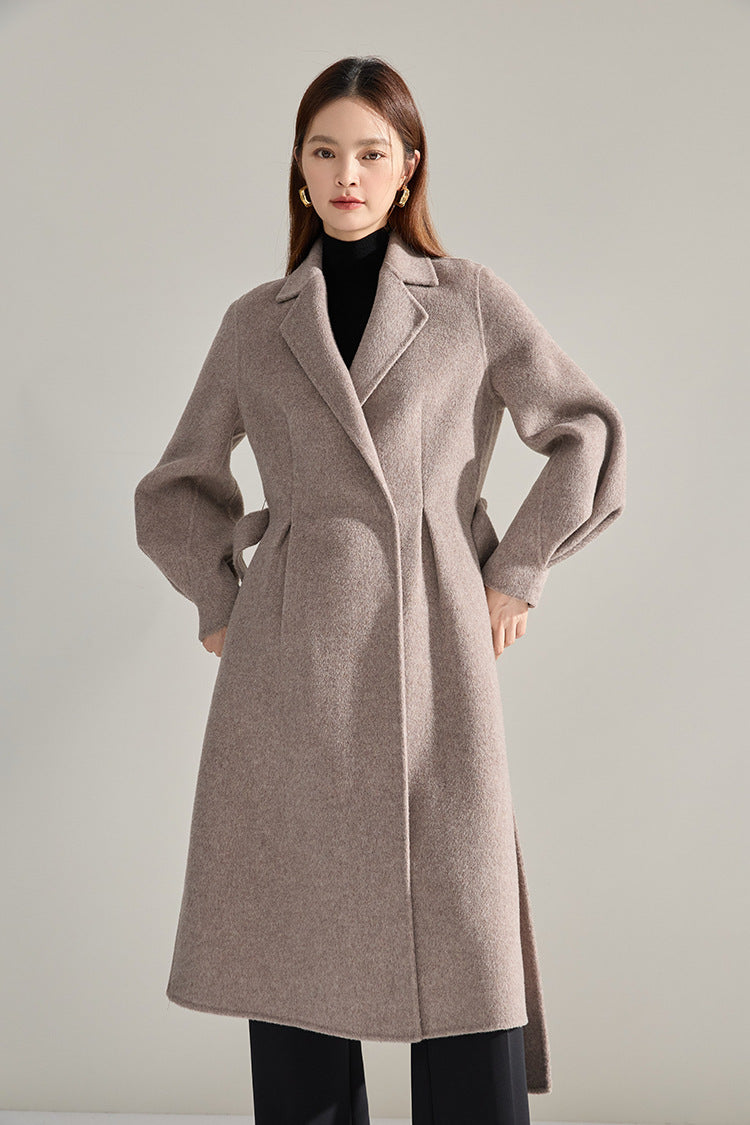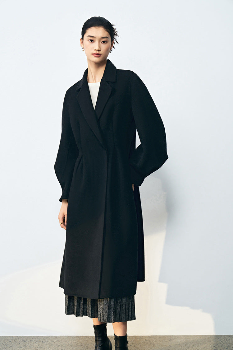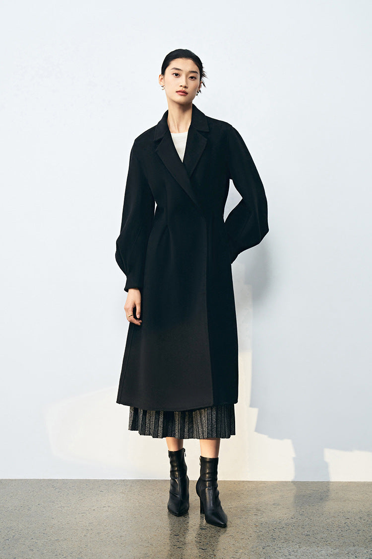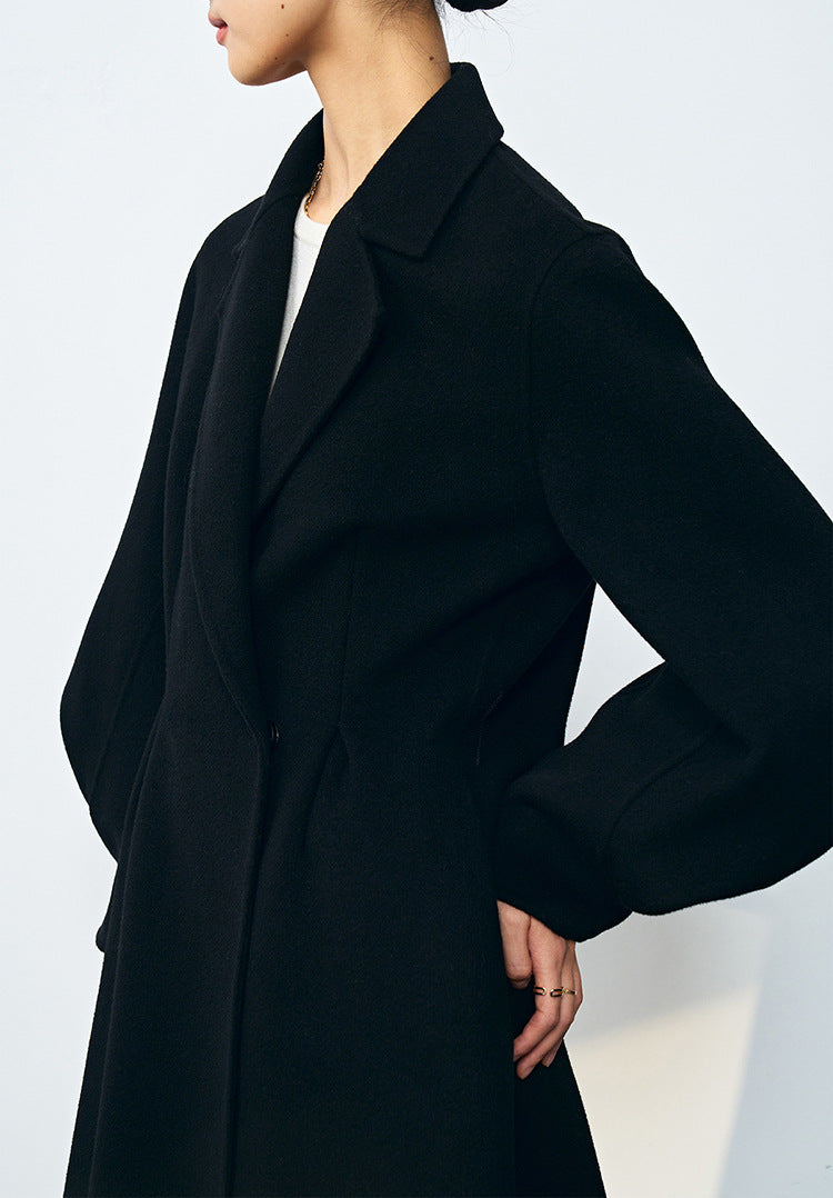 Bel Vurgulu Balon Kollu Yün Kaban