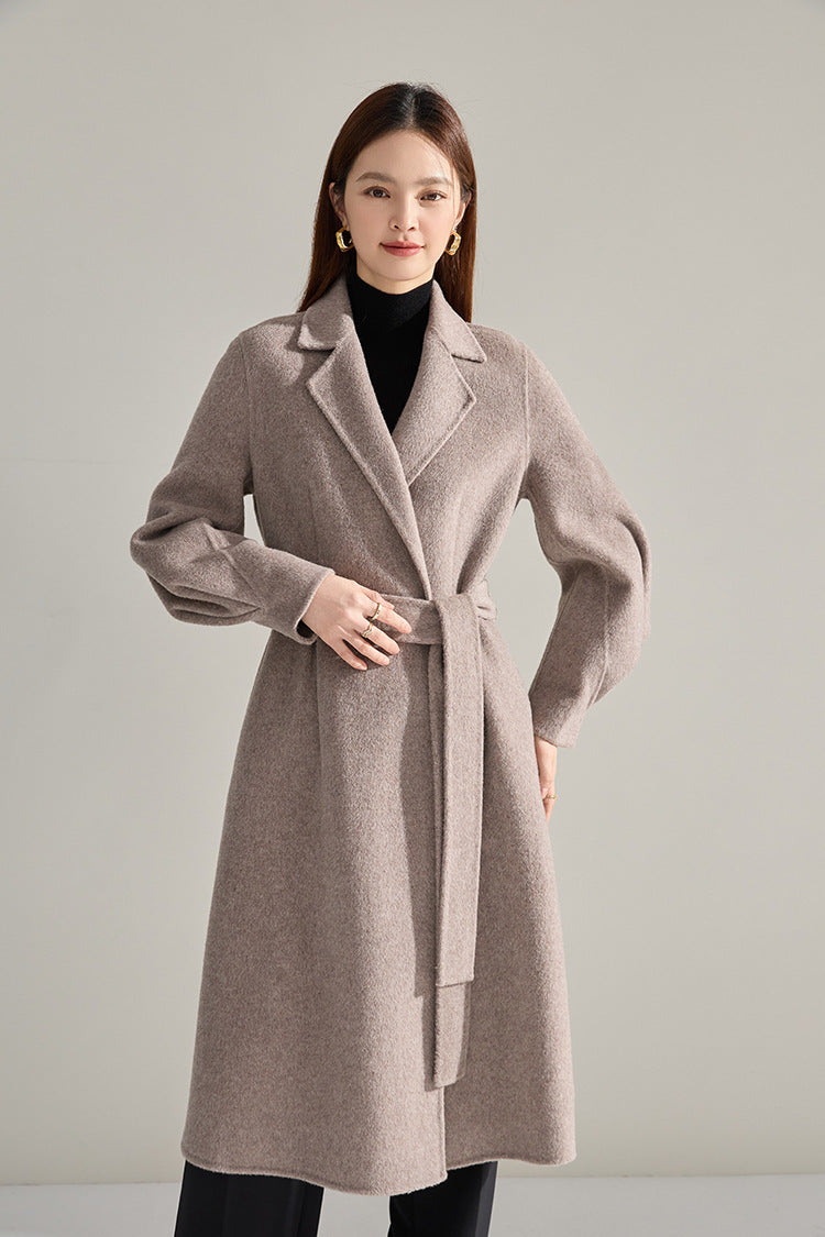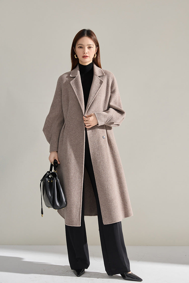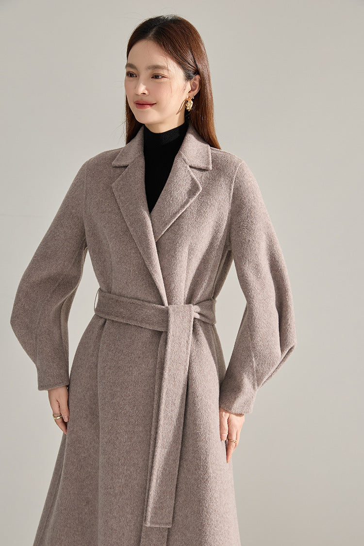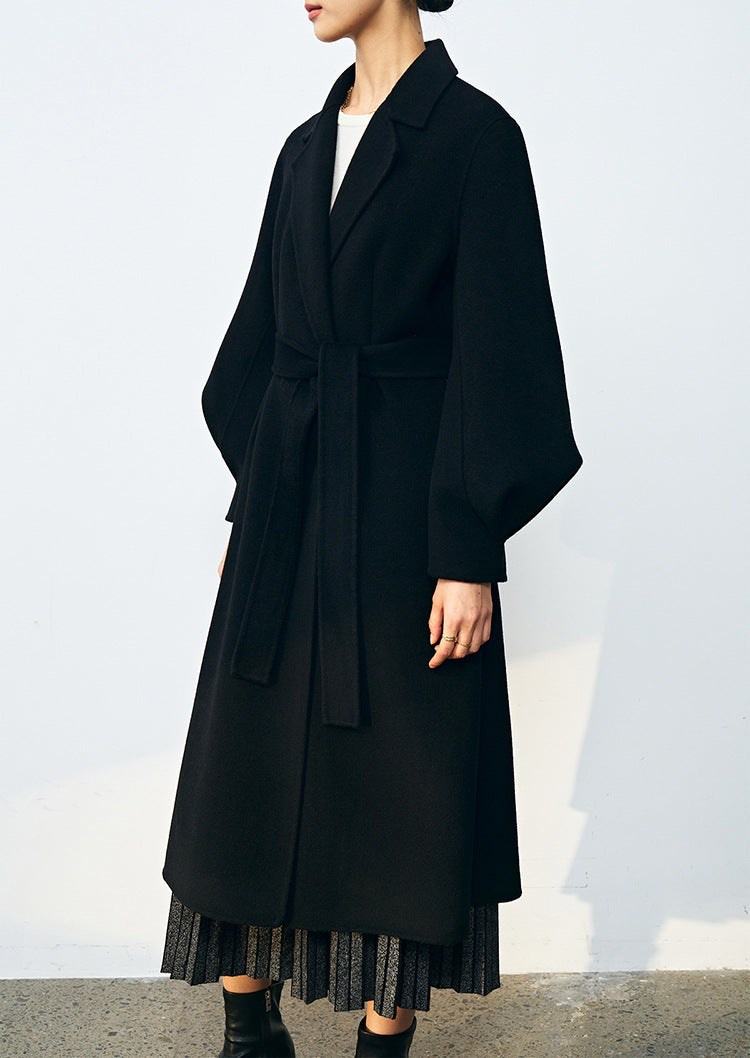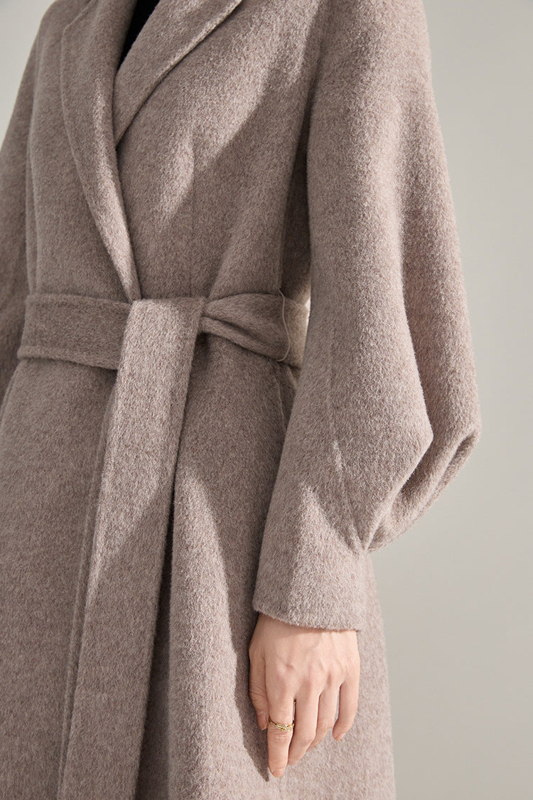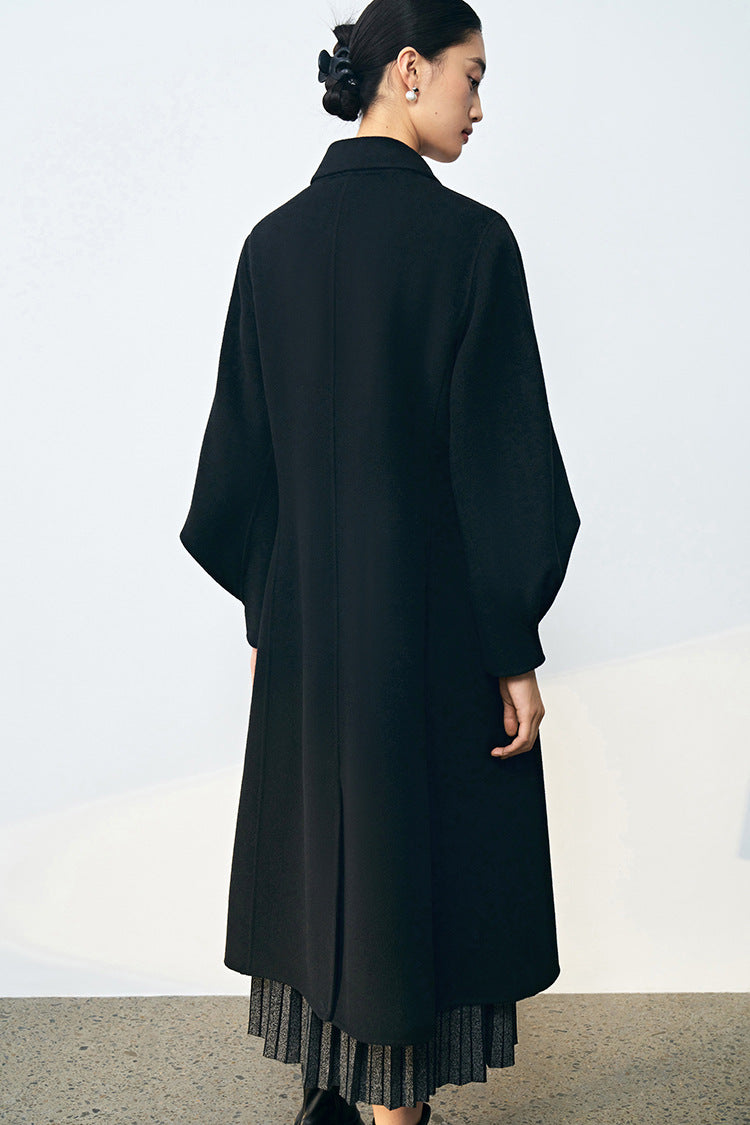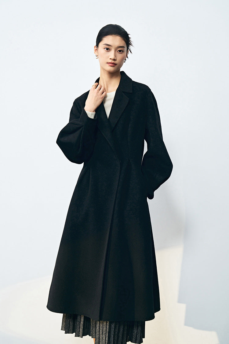 Bel Vurgulu Balon Kollu Yün Kaban