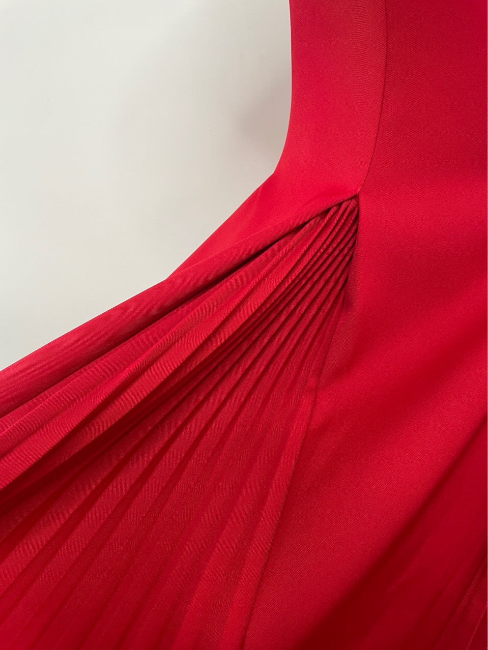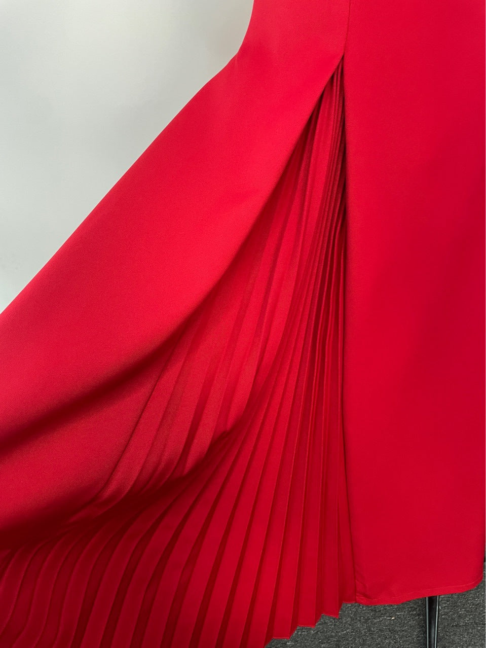 - Pileli ve kırışık dokulu kumaş, hacimli ve sofistike bir duruş sağlar