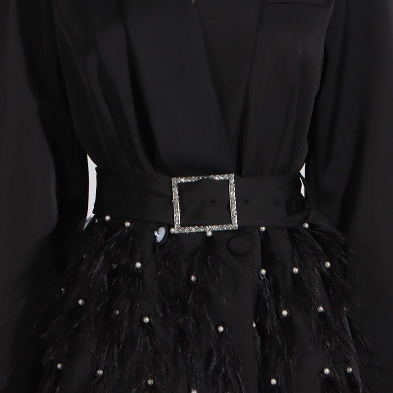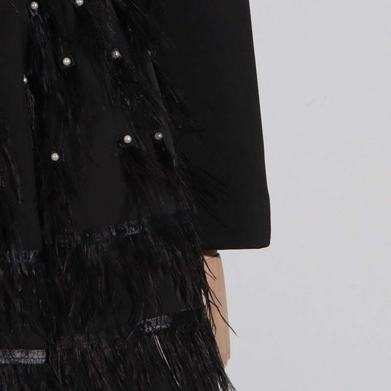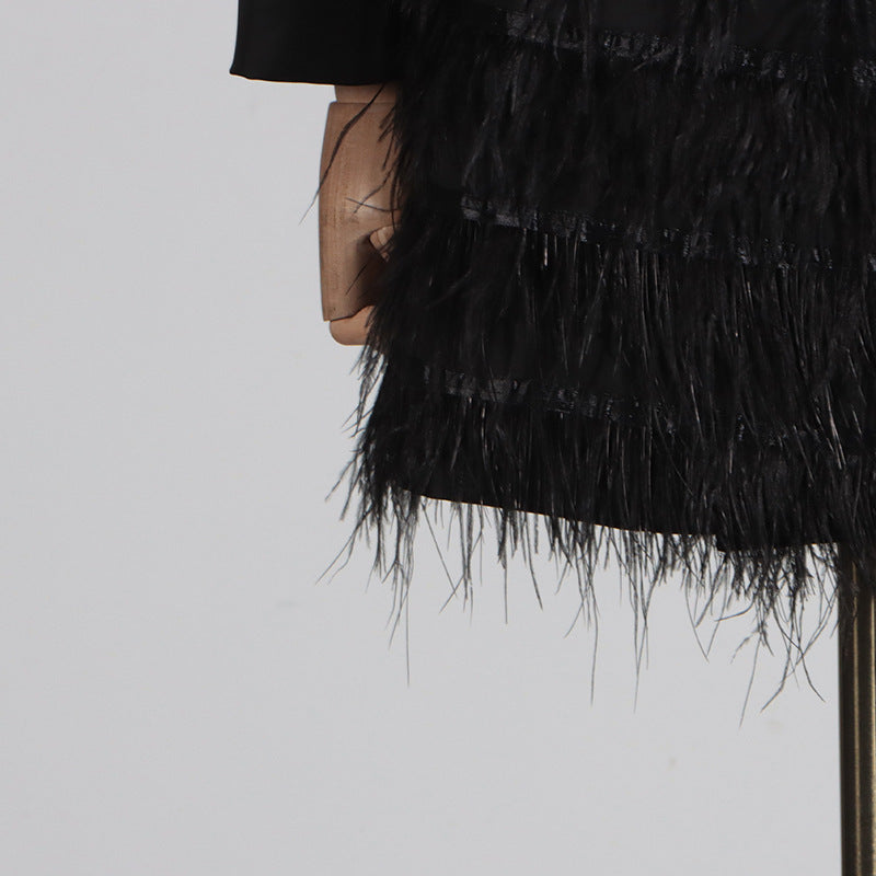 Zarif Işıltı Tüy Detaylı Mini Elbise