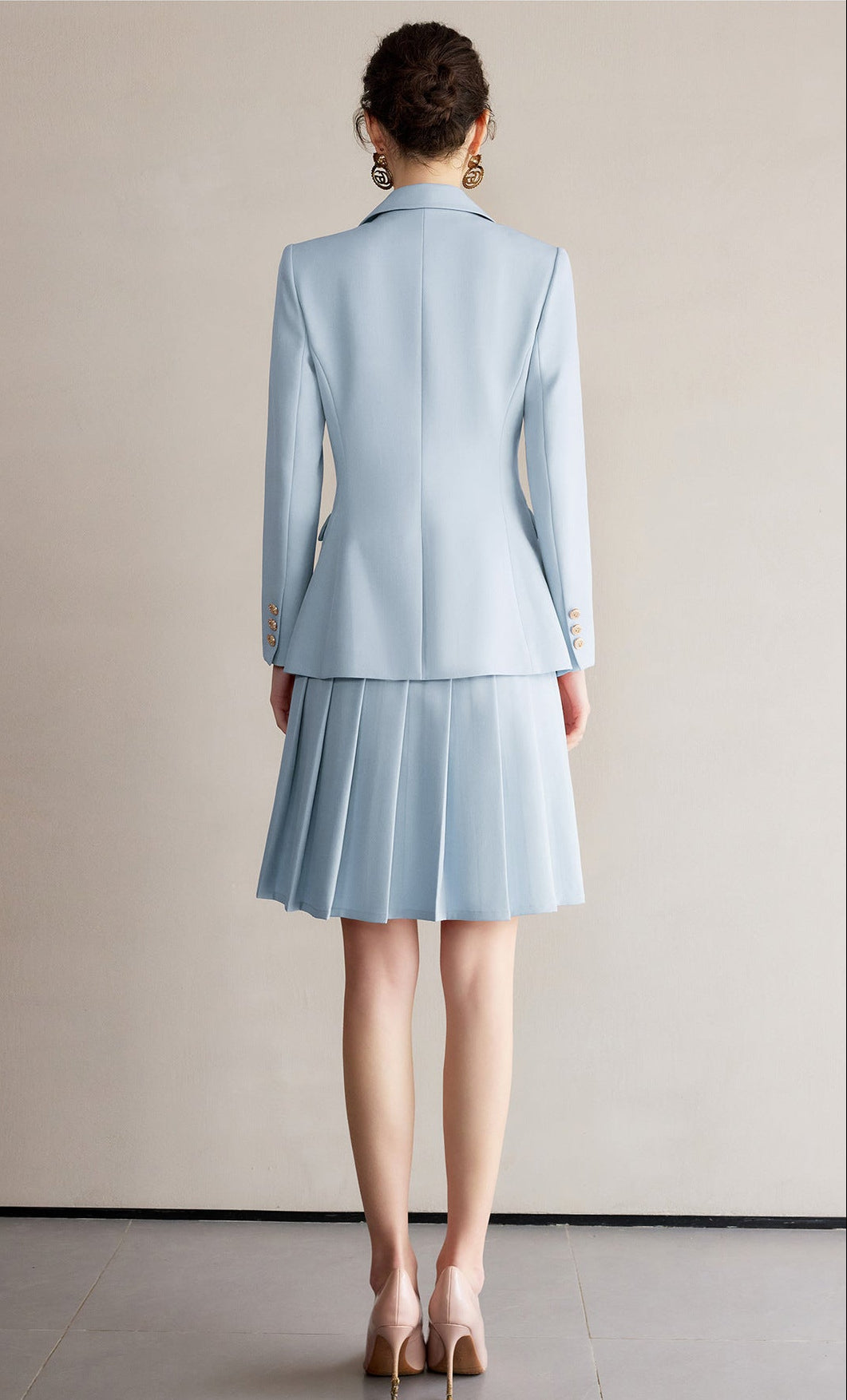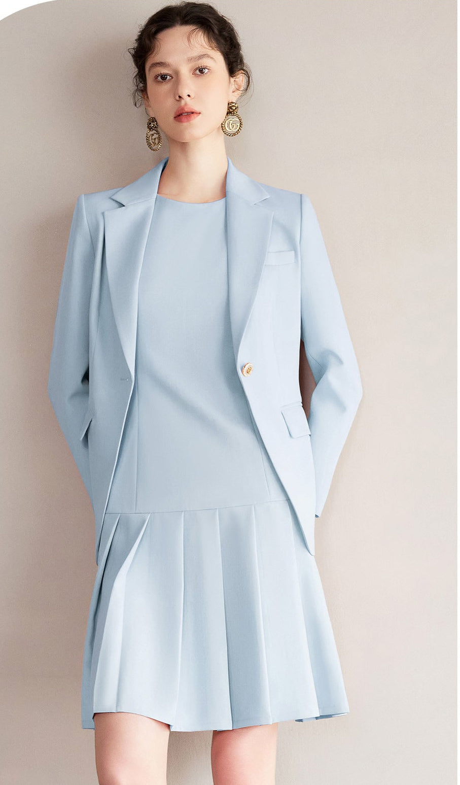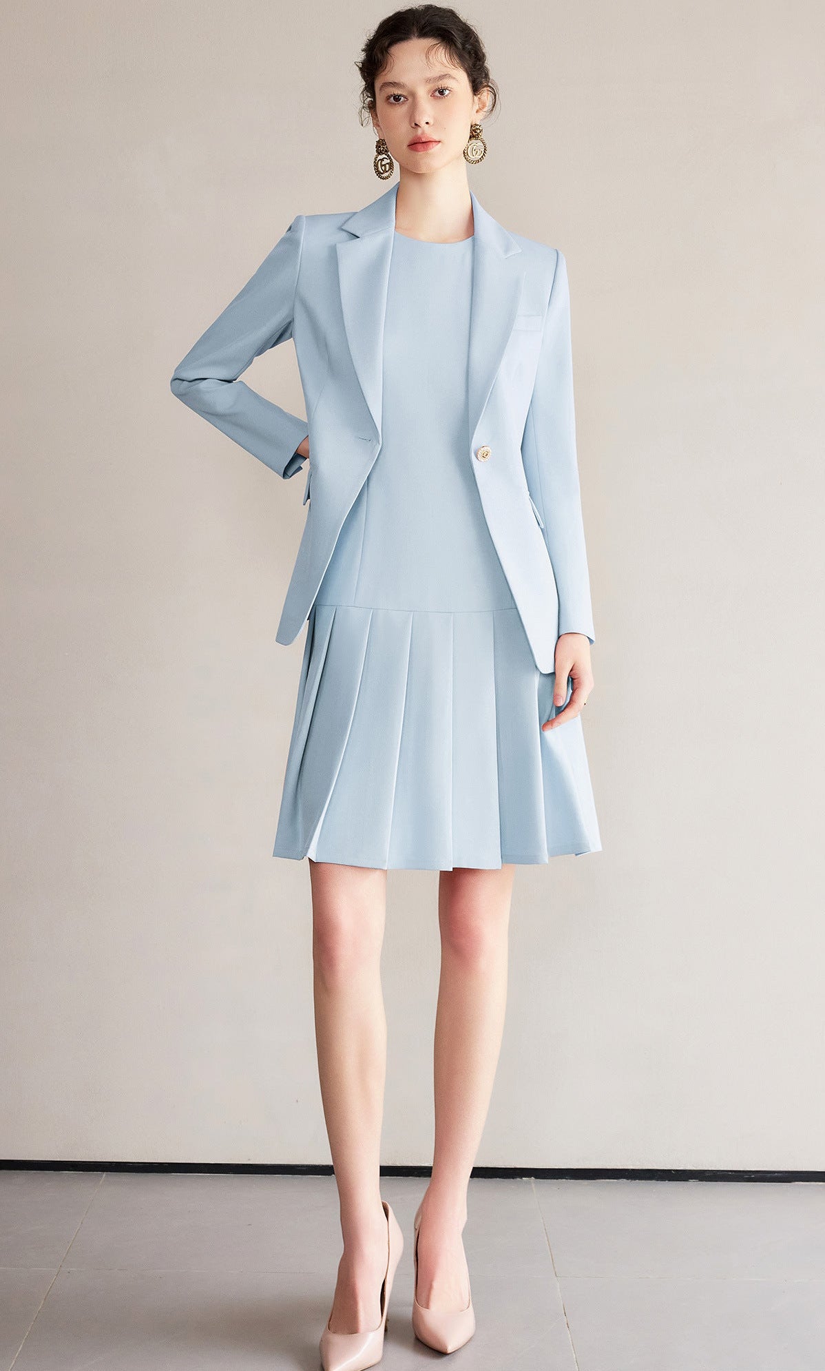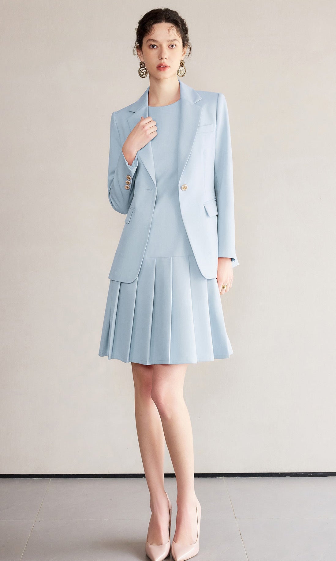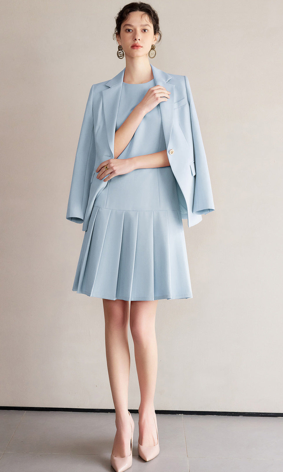 Zarif Mavi İkili Takım – Ceket ve Elbise Kombini