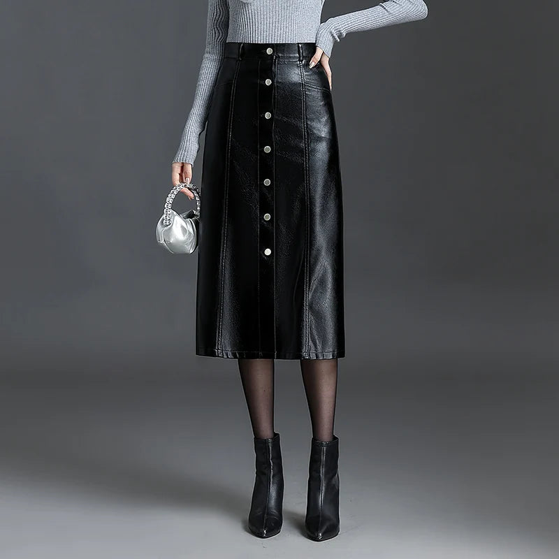 Deri A-Line Düğme Detaylı Zarif Etek