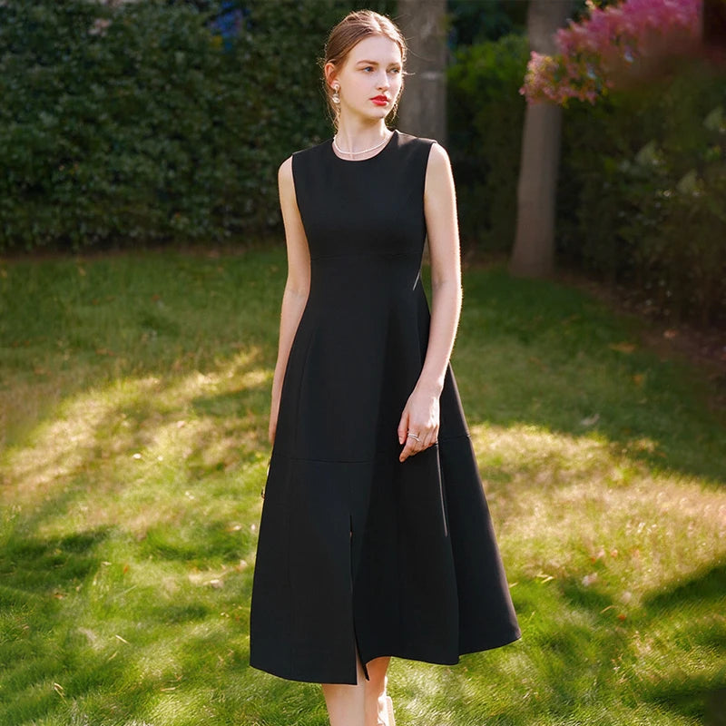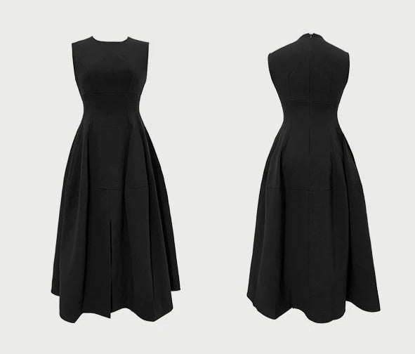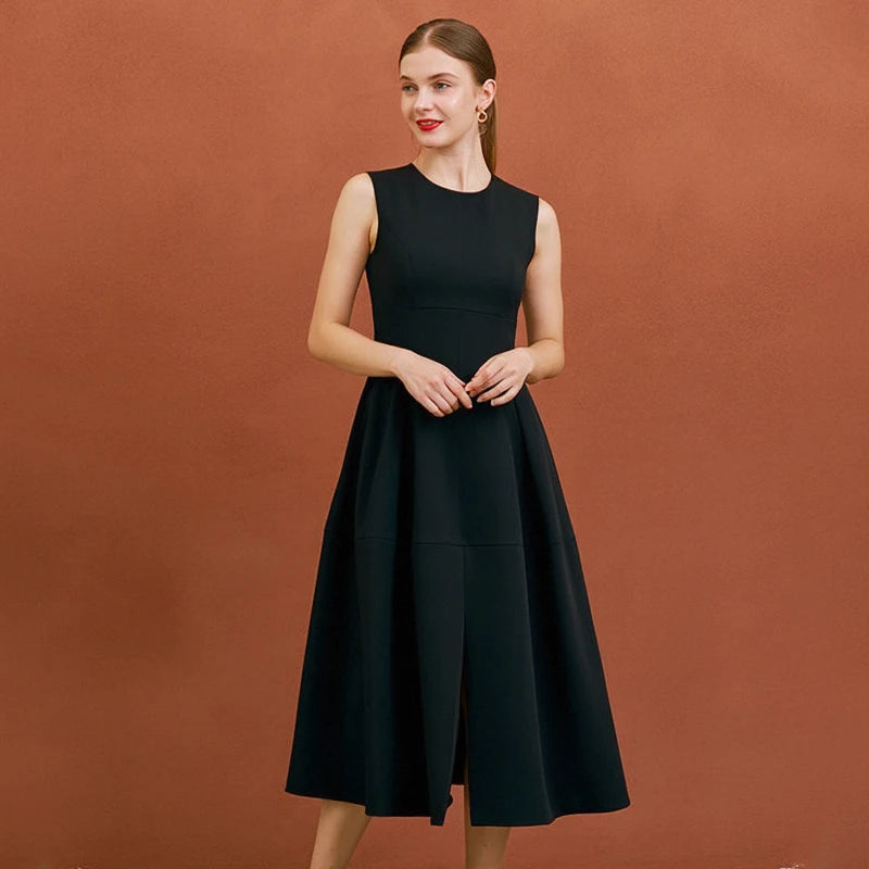 Bu şık ve zarif siyah kolsuz midi elbise, yuvarlak yaka tasarımıyla hem günlük hem de özel davetlerde kullanım için idealdir. A kesim silueti, vücuda doğal bir uyum sağlarken, yırtmaç detayı hareket özgürlüğü sunar. Nefes alabilen ve yıkanabilir %100 polyester kumaş, konforlu ve uzun ömürlü bir kullanım sağlar.